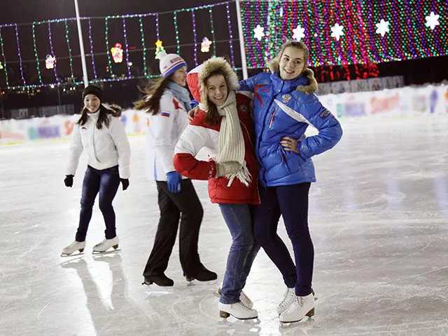 1. Каток в парке Нефтехимиков. В будние дни каток работает с 14:00 до 21:00, а в выходные с 10 утра до 22 вечера. Напрокат коньки выдают до 21:00.